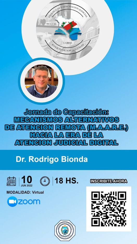 (M.A.A.R.E.) hacia la era de la atención judicial digital. estará a cargo del Dr. Rodrigo Bionda.