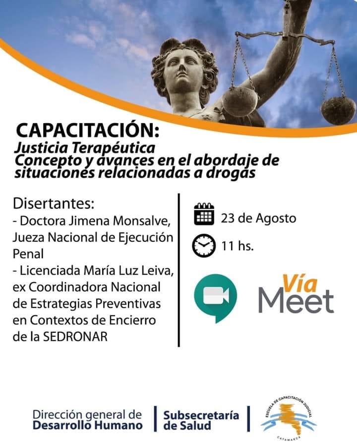 Capacitación : justicia terapéutica, conceptos y avances en el abordaje de situaciones relacionadas a la droga . 23 de agosto