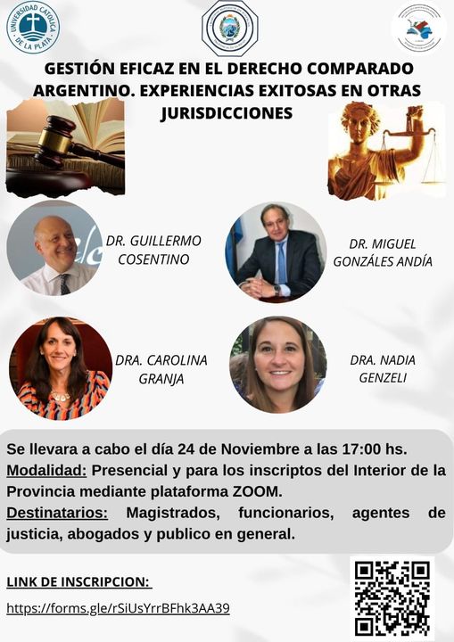Los temas que abordarán son: Gestión eficaz en el Derecho comparado argentino y Experiencias exitosas en otras jurisdicciones.