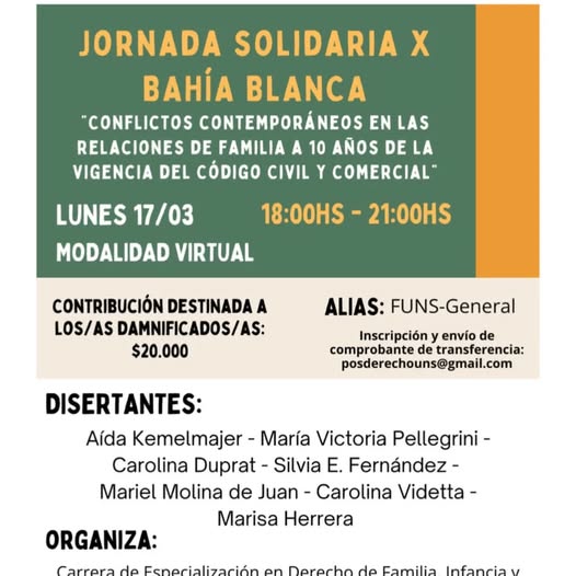 Organiza: carrera de Especialización en Derecho de Familia, Infancia y Adolescencia del Departamento de Derecho de la UNS