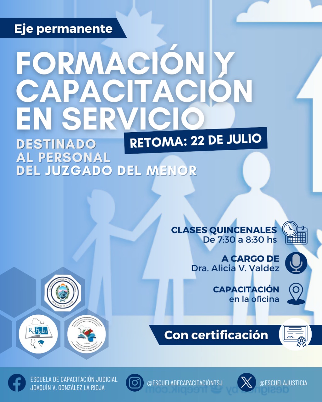 Comenzamos con las clases de este segundo semestre de "Formación y Capacitación en Servicio", destinada al personal del Juzgado del Menor, a cargo de la Dra. Alicia V. Valdez, quien dictará la capacitación los martes de por medio dentro de la modalidad, capacitación en la oficina.